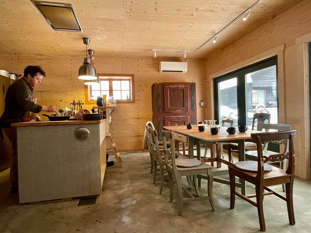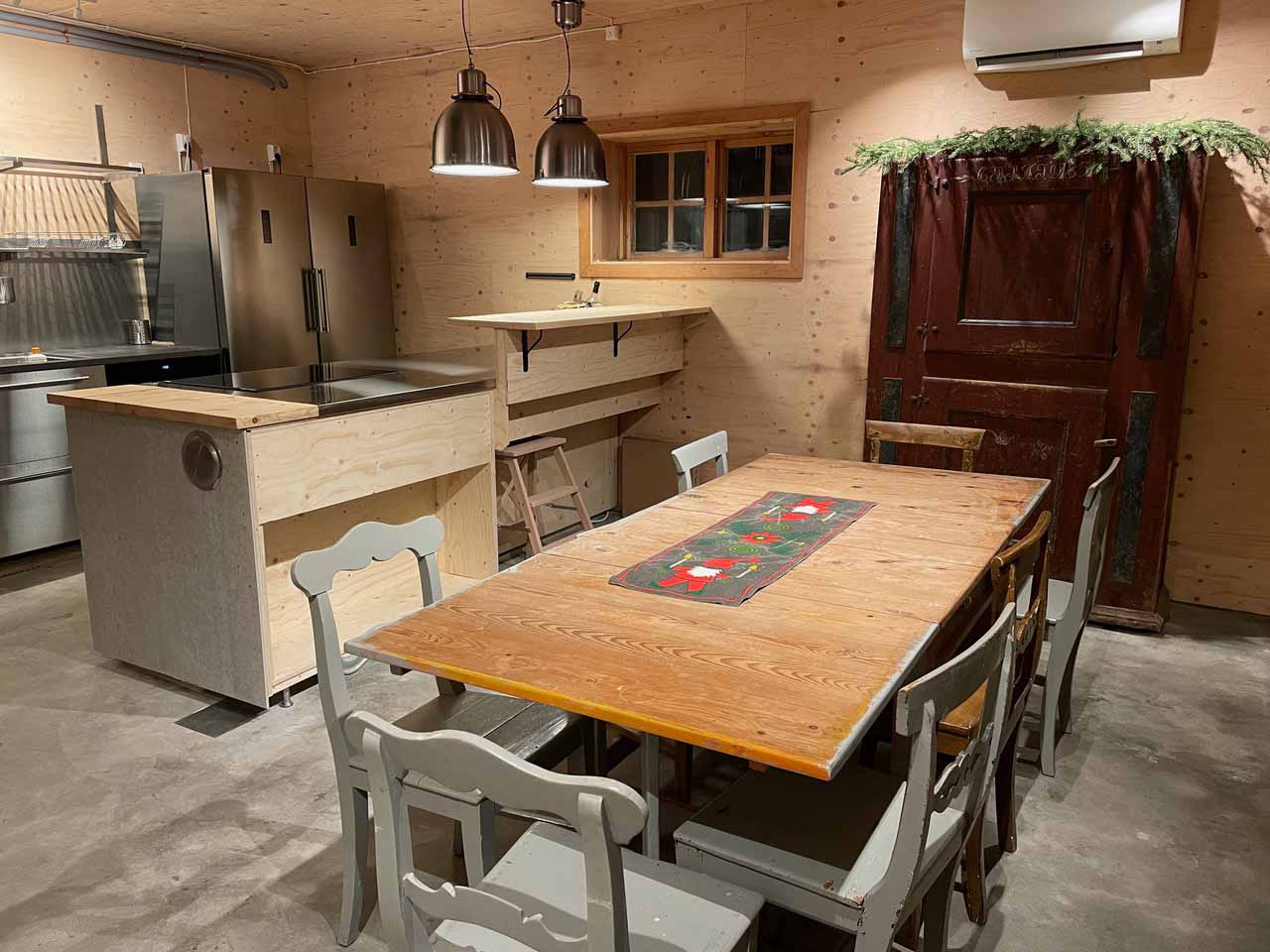 I det som en gång var gårdens sommarladugård byggdes sen ett garage och nu har vi byggt om det till kök, bar och restaurang. Det ligger ca 300 meter från Norråkers Handel i anslutning till Marjas stuga där du också kan bo över.