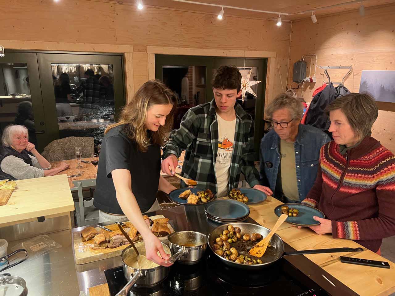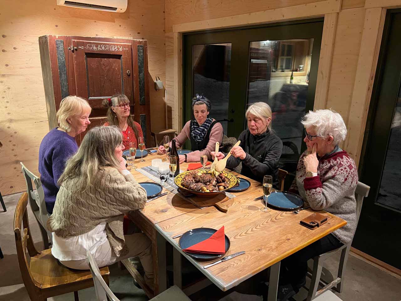 Vi serverar hemlagad rejäl mat beroende på humör och vad som finns att tillgå för säsongen.